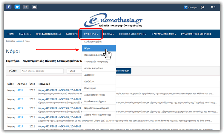 Αναζητήσεις στην ψηφιακή πλατφόρμα e-nomothesia.gr